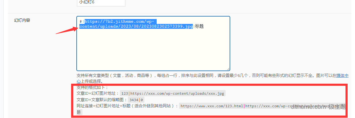 然后在B2的首页幻灯片内放入你的图片地址,注意格式要求