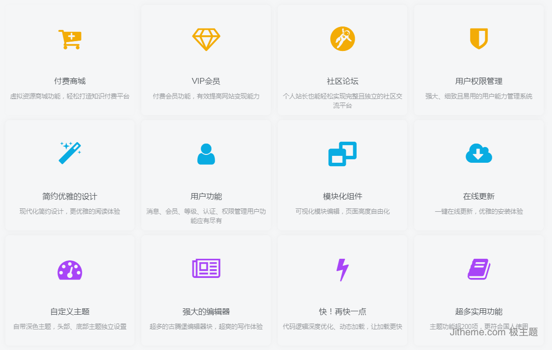 Zibll子比主题专为阅读类网站开发,设计简约优雅、功能全面。UI界面模块化、多种布局、多种显示效果可选择,高度自由化,更容易搭配出自己喜欢的网站。支持付费阅读,付费下载,付费视频的支付功能和完善用户VIP会员系统加上强大的模块化编辑器工具,为站长提供有力的生产力。整体的开发理念都是围绕着阅读体验,减少花里胡哨的无用功能,把核心都集中在内容上。页面的布局、间距、功能都精心设计,只为让页面浏览更加自然,让用户更加易于阅读,让作者更加易于写作。